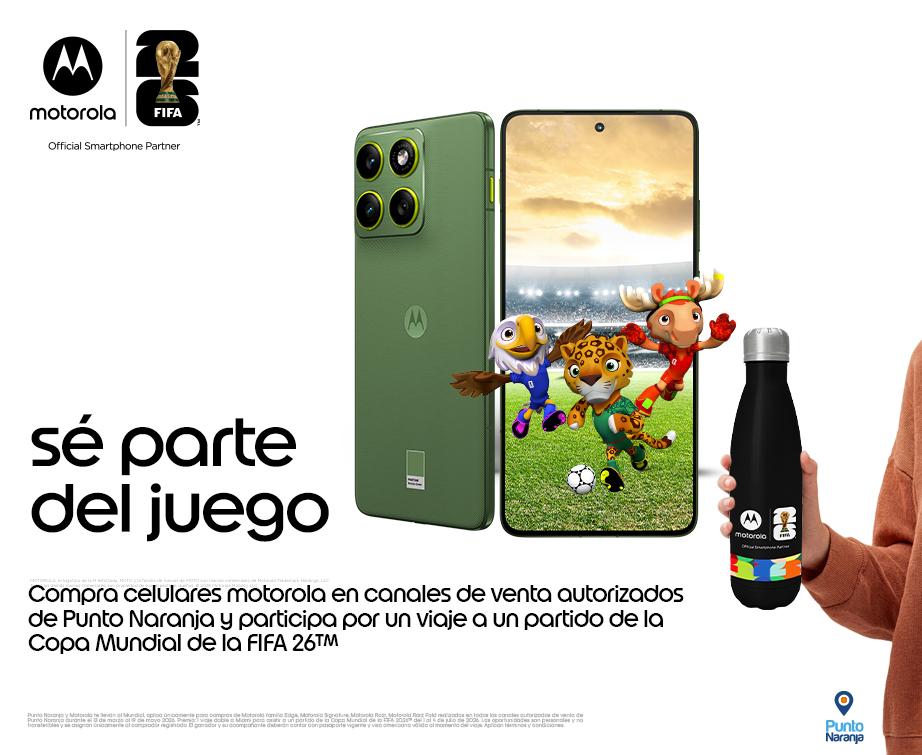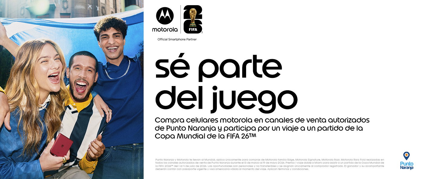 Compra celulares Motorola en Punto Naranja y participa por un viaje a un partido de la Copa Mundial de la FIFA 26™.