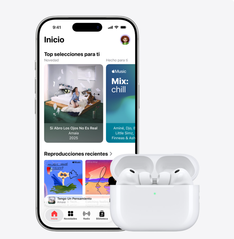 Configura los Airpods en el iPhone con un simple toque y empieza a alucinar con el audio adaptativo. El control de ruido se ajusta automáticamente en función del entorno y tus interacciones a lo largo del día.